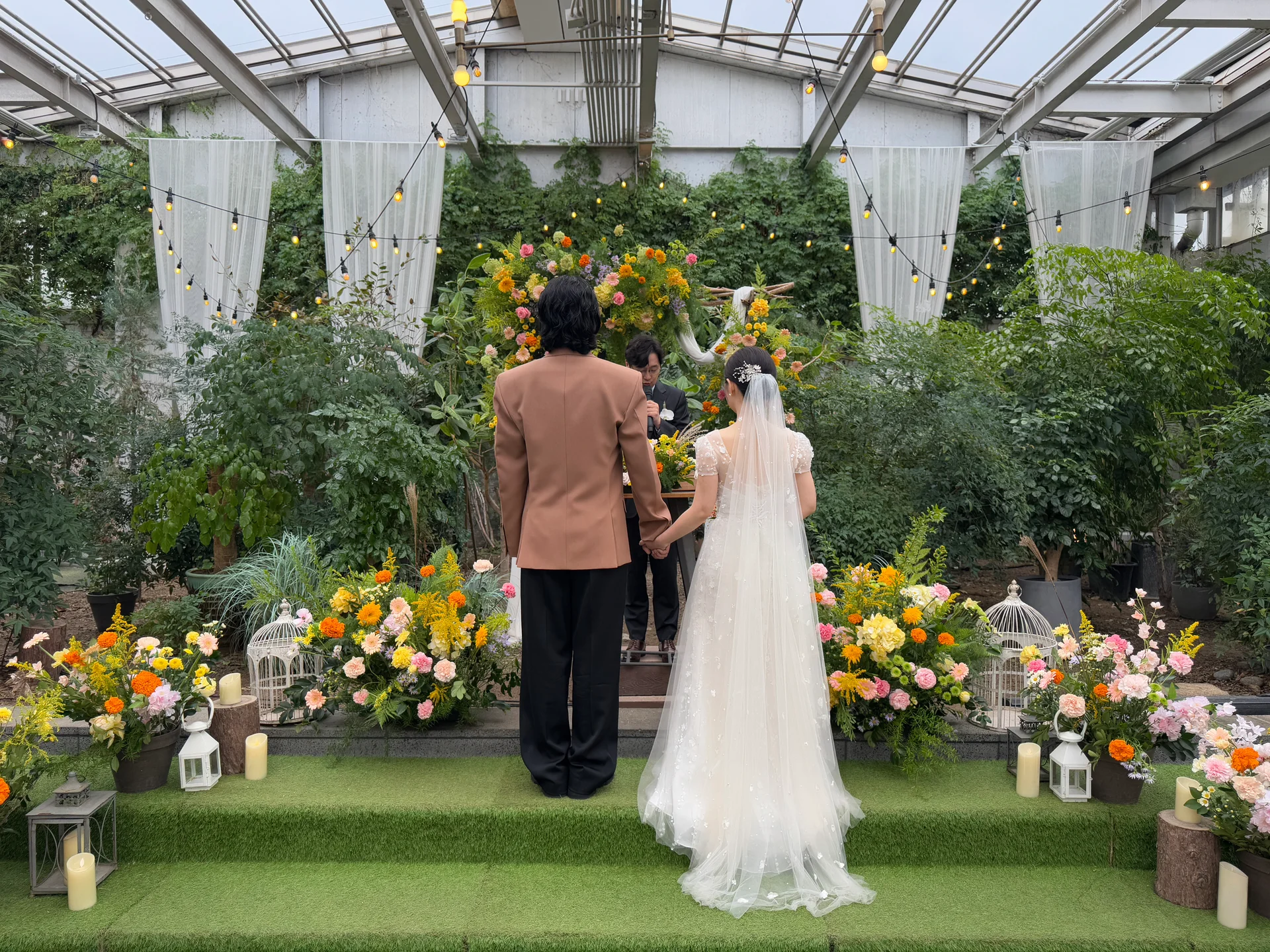 천장 개방의 묘미: 날씨가 좋은 날에는 천장을 열어 실제 하늘을 배경으로 한 자연광 웨딩이 가능합니다. 비가 오거나 추운 날에는 천장을 닫아도 내부 구조 자체가 하우스웨딩 무드를 완벽히 살려주어 날씨 변수 걱정 없이 예식을 치를 수 있습니다.