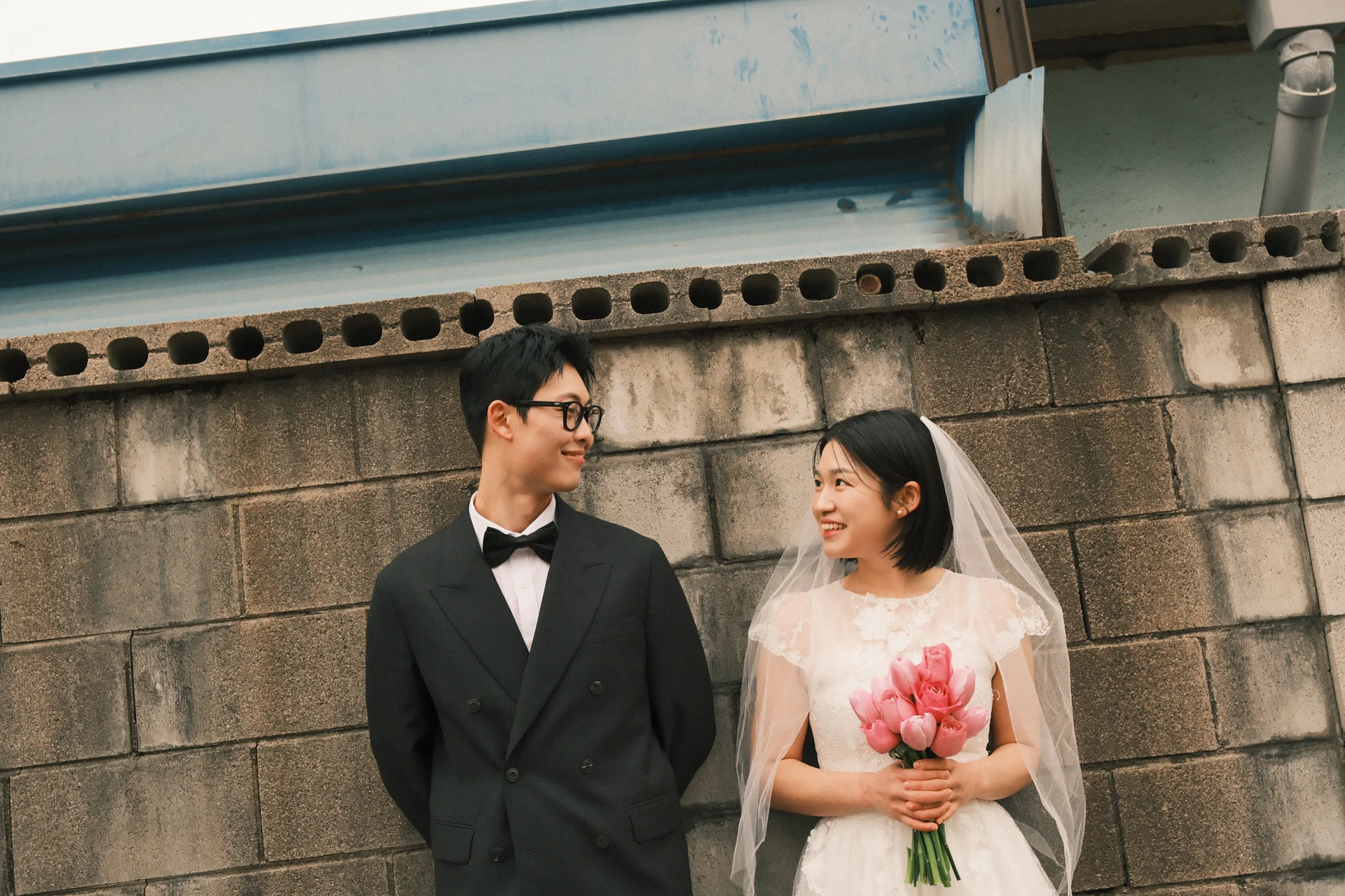 A. 장소의 빈티지한 무드와 잘 어우러지는 세미 웨딩드레스나 깔끔한 원피스, 톤다운된 자켓 스타일링을 추천합니다. 정형화된 턱시도보다는 가벼운 수트 셋업이 훨씬 세련되게 담깁니다.