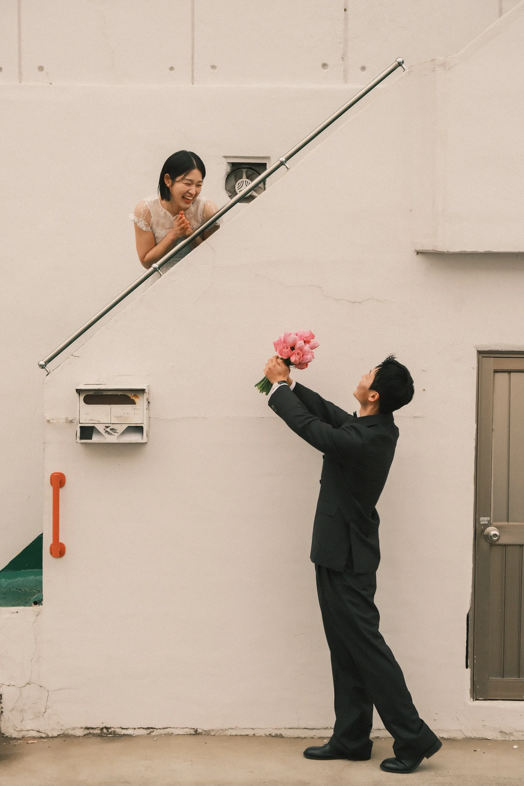 골목 구간: 오래된 주택 벽과 낮은 건물들을 배경으로 잔잔하고 서정적인 컷을 촬영합니다. 서로를 바라보는 눈빛과 나지막한 웃음소리가 사진에 스며듭니다.