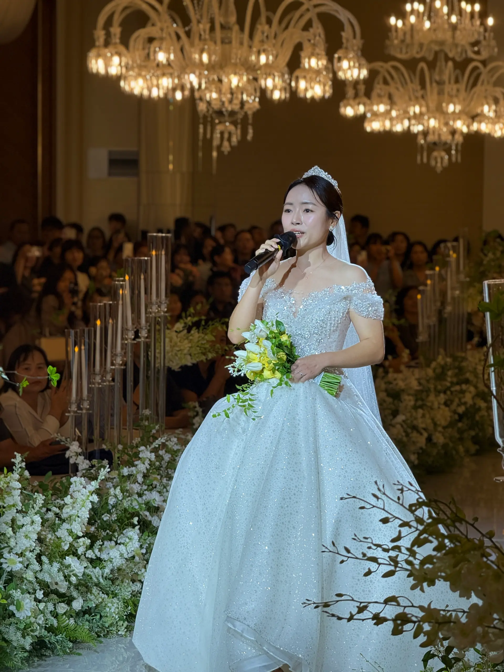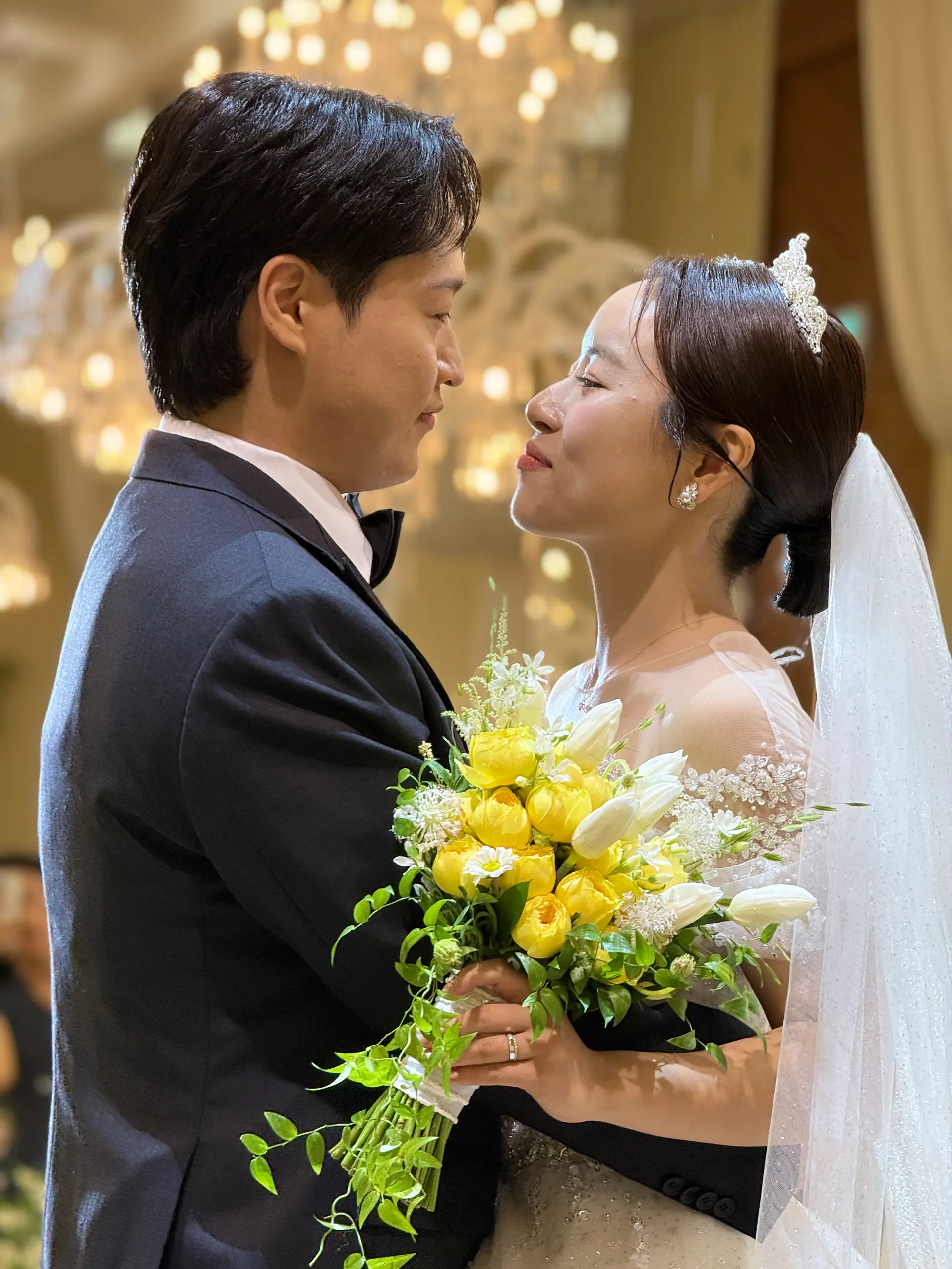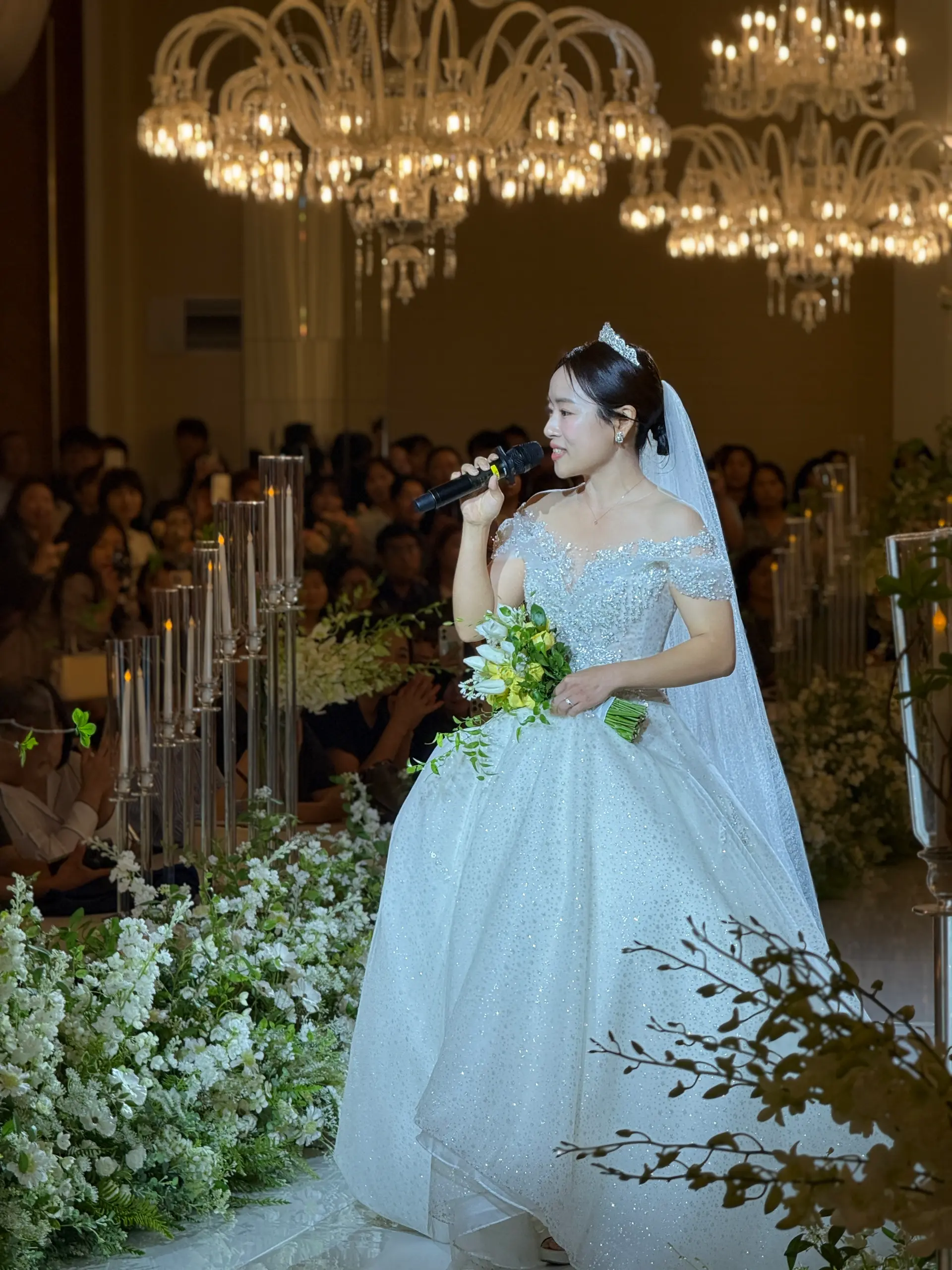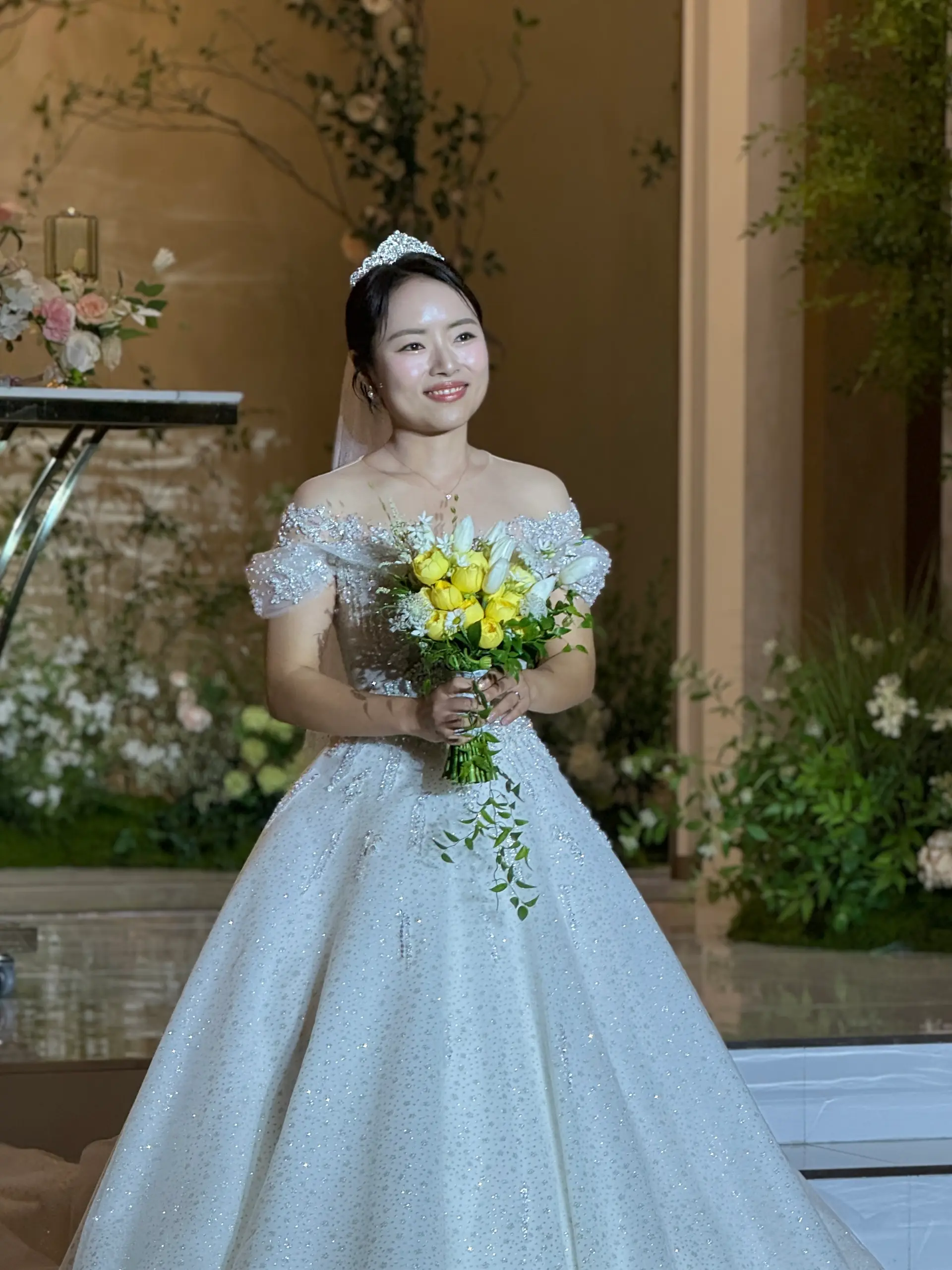 촬영 포인트: 샹들리에 조명과 단차 있는 소파는 신부님 중심으로 시선을 집중시키는 연출에 적합하며, 아이폰 감성컷이 잘 나옵니다.