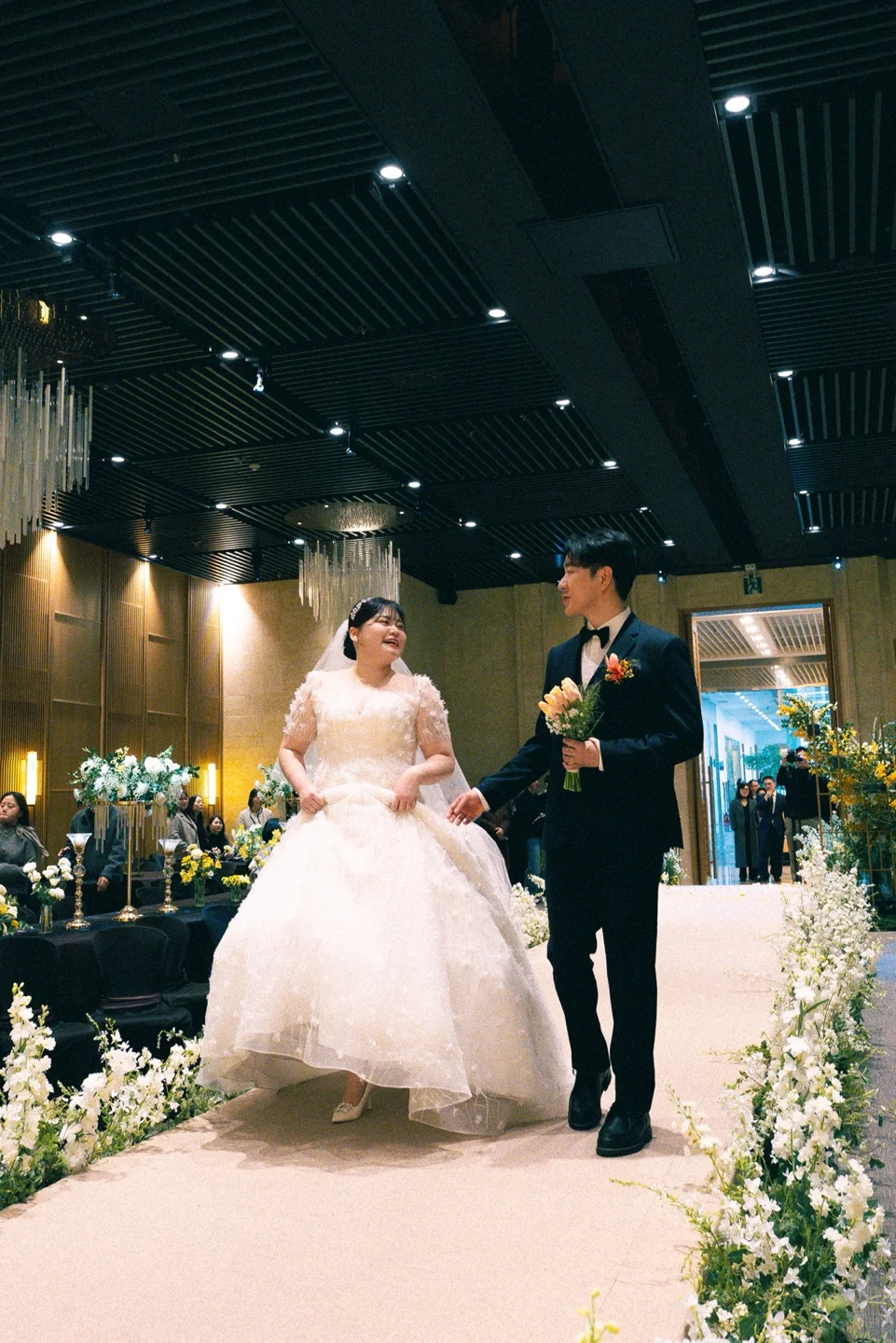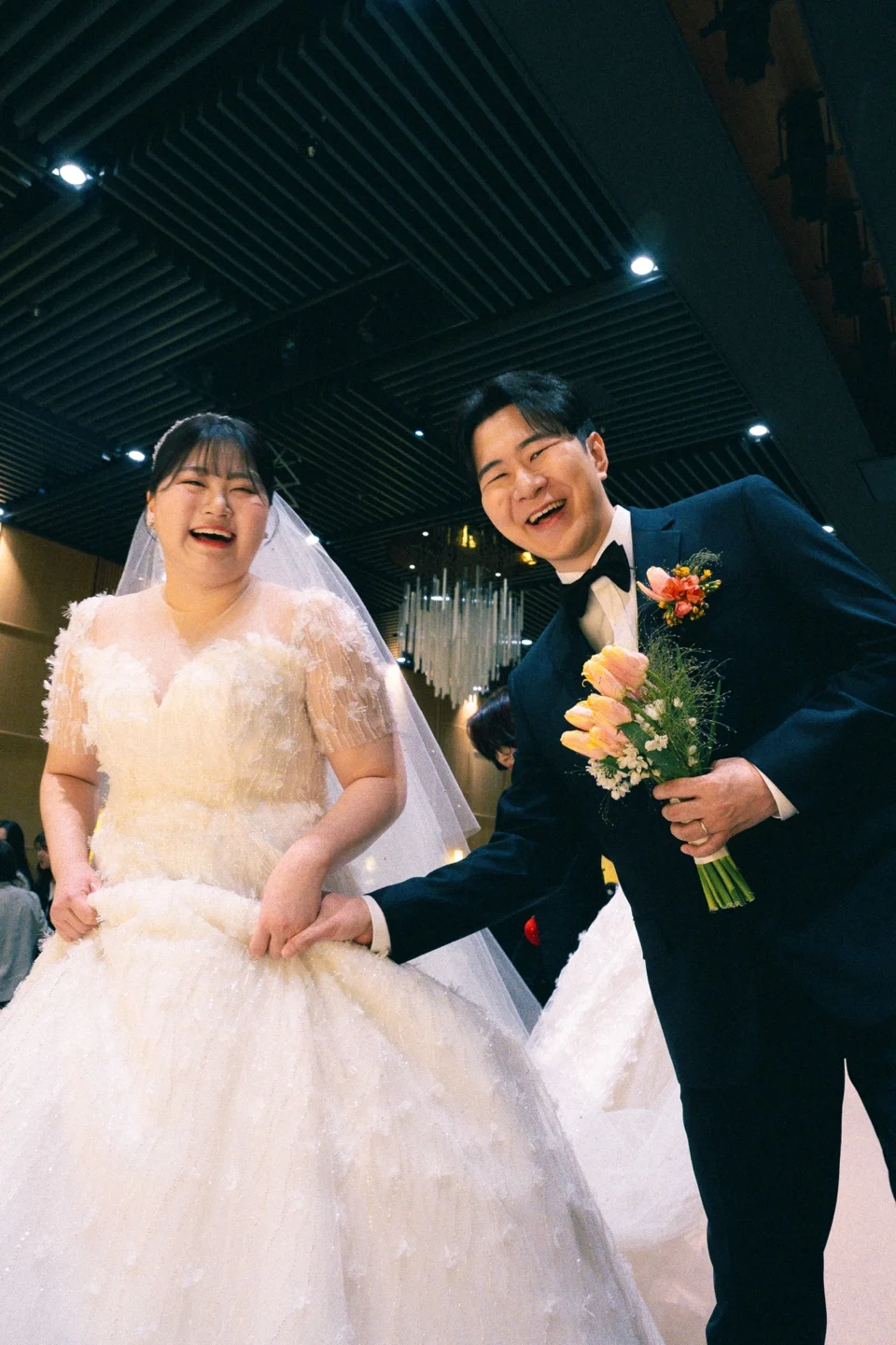 A. 네, 신랑신부님의 컨디션과 예식 간격에 따라 폐백실이나 홀 내부에서 추가 연출 컷을 진행합니다. 두 분이 너무 지쳐 계시지 않다면 마지막 한 컷까지 정성껏 담아드리는 것이 작가님의 철칙입니다.