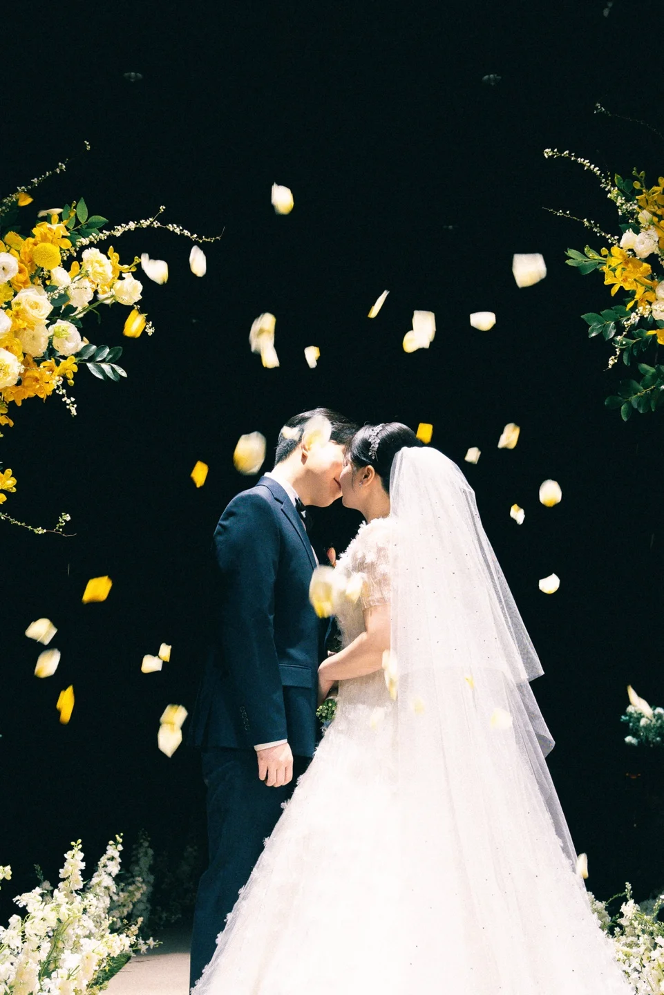 여유로운 예물 교환: 반지를 끼워줄 때는 카메라가 충분히 담을 수 있게 천천히 진행해 주세요.