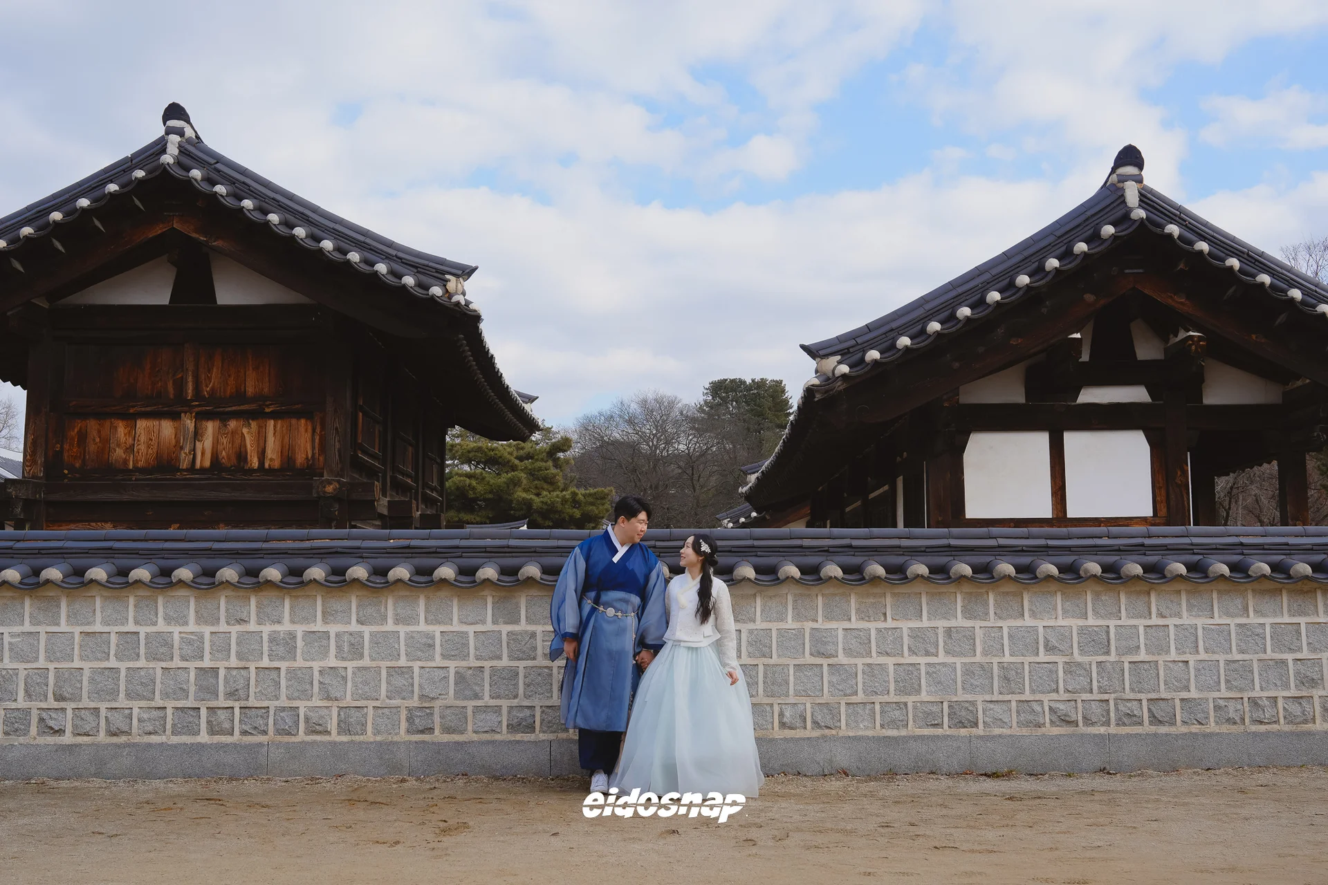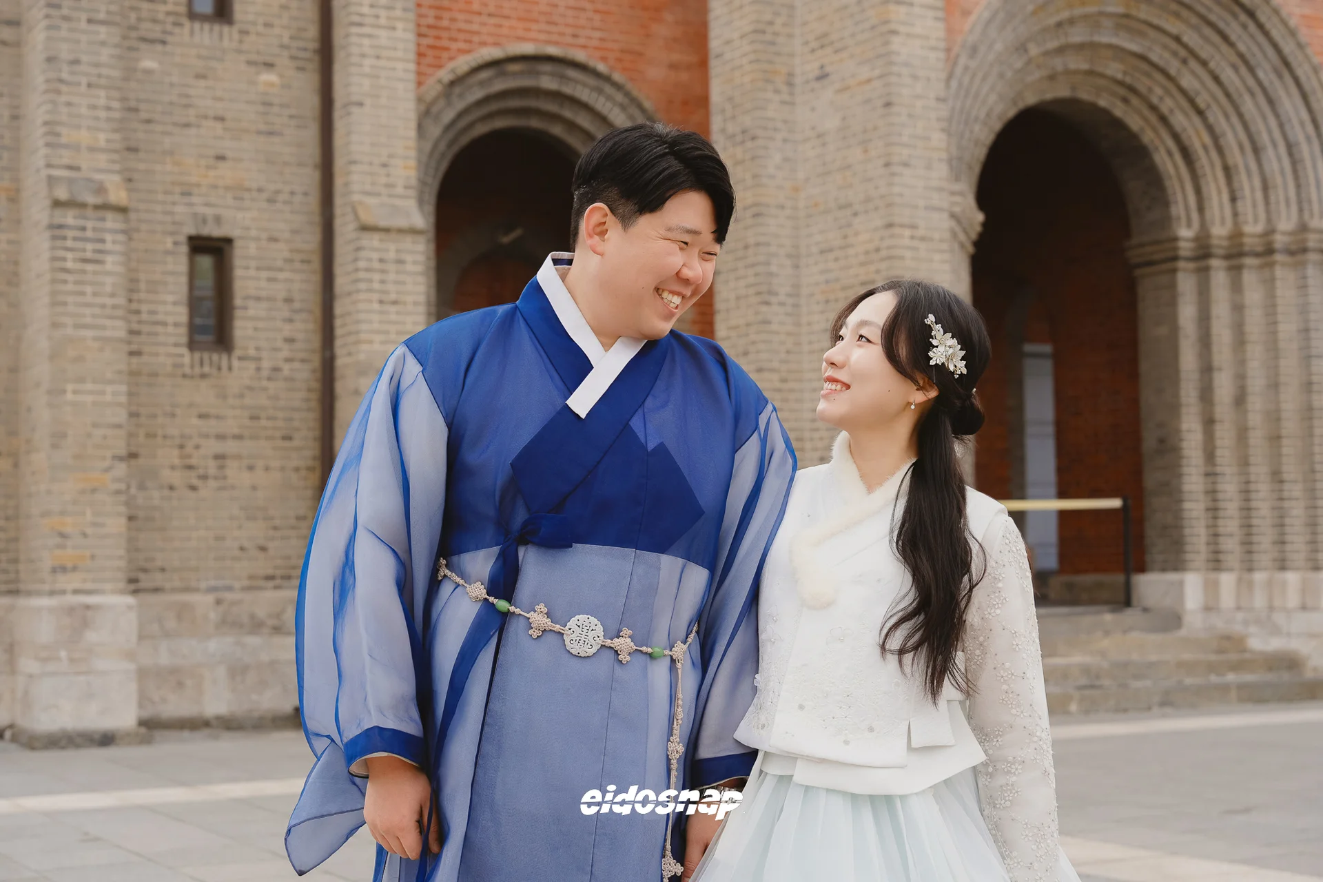 단아하고 정숙하기만 한 한복 사진은 이제 잊으셔도 좋습니다. 최근 예비부부들 사이에서는 전통의 고즈넉함 위에 현대적인 감각을 덧입힌 ‘이색 한복 스냅’이 큰 인기를 끌고 있는데요. 오늘은 전주 한옥마을을 배경으로 붉은 벽돌 대신 기와를, 영어 표지판 대신 한글의 선을 힙한 오브제로 활용하는 이도스냅(EIDOSNAP)의 촬영 후기를 소개해 드릴게요.