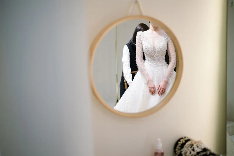 • 솔직한 체크포인트: 버진로드 중간에 조명이 닿지 않는 어두운 구간이 존재하므로, 레브즈스냅은 이를 미리 파악하여 실시간으로 노출을 조정하며 촬영합니다. 또한 단상 주변의 색감을 고려한 정교한 후보정으로 세련된 톤을 유지해 드립니다.