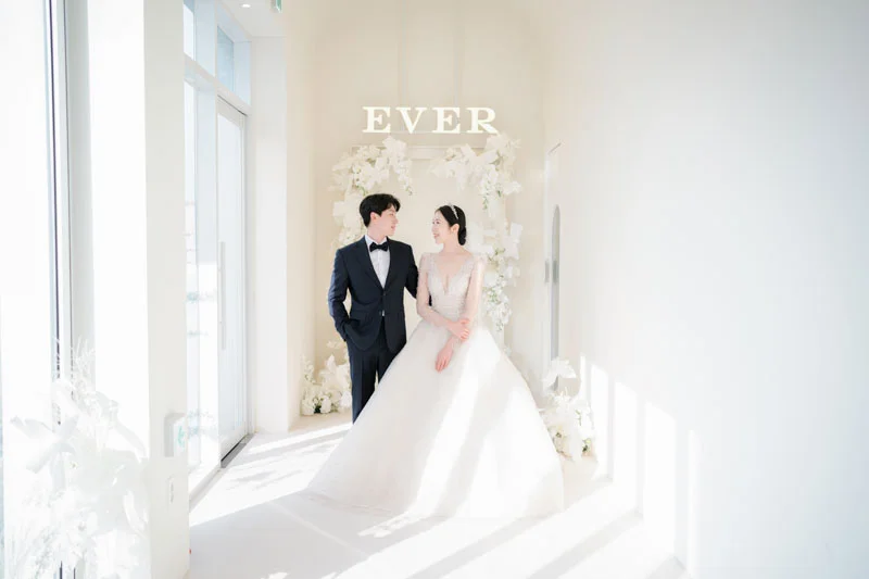 • 자연광의 마법: 통창을 통해 들어오는 부드러운 채광은 신부님의 피부 톤을 화사하게 살려주며, 감성적인 인물 중심 컷을 남기기에 최적의 환경을 제공합니다.
