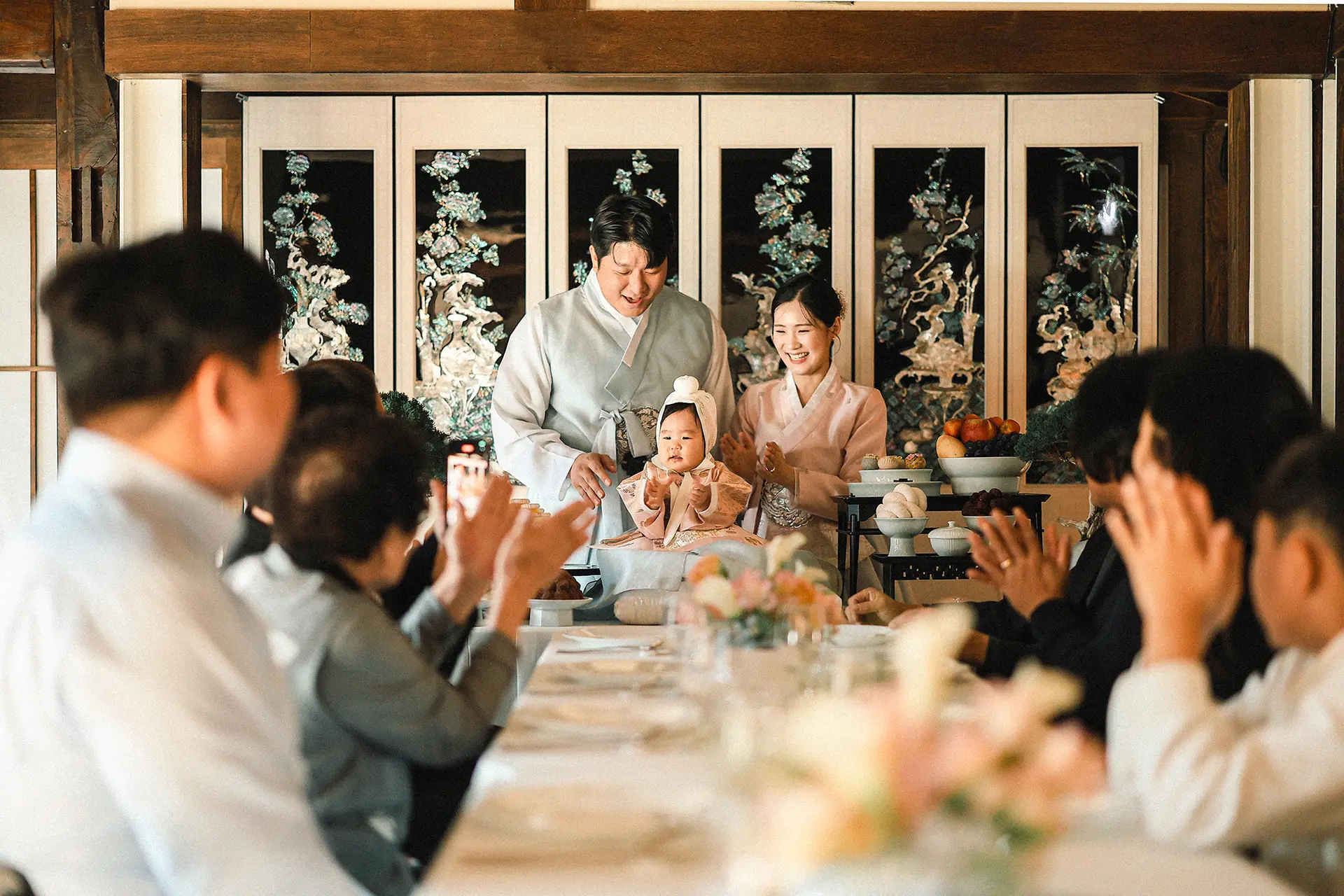 공간 특징: 한옥의 절제된 아름다움과 잔잔하고 따뜻한 느낌의 공간 구성 덕분에 돌잔치라는 기념일이 더욱 특별하게 느껴집니다.