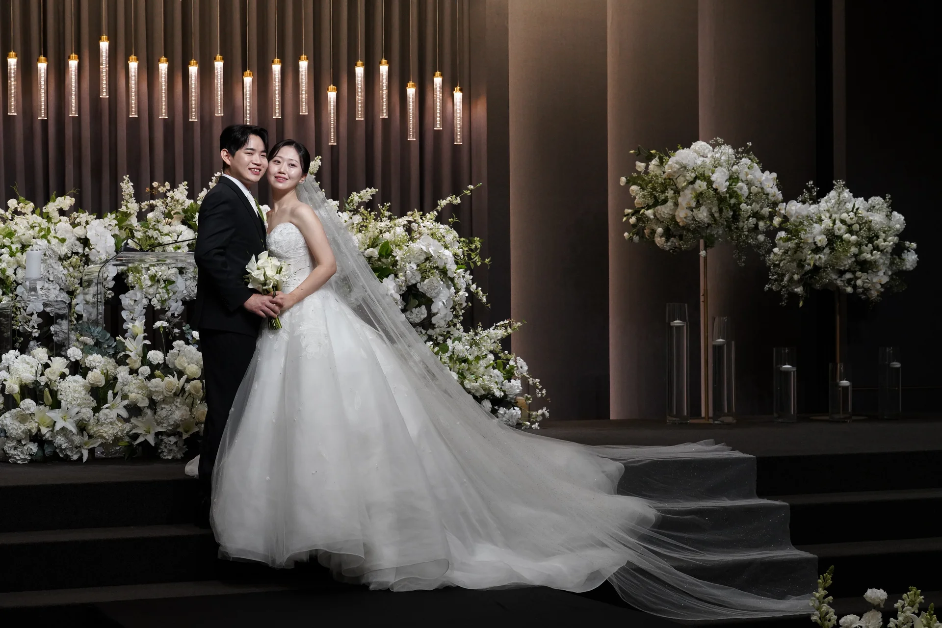 A. 네, 오히려 어두운 홀은 인물에게 집중되는 핀 조명의 효과가 극대화됩니다. 플로브스냅은 조명의 하이라이트와 쉐도우를 정교하게 활용하여, 보정으로 흉내 낼 수 없는 우아하고 입체적인 결과물을 약속드립니다.