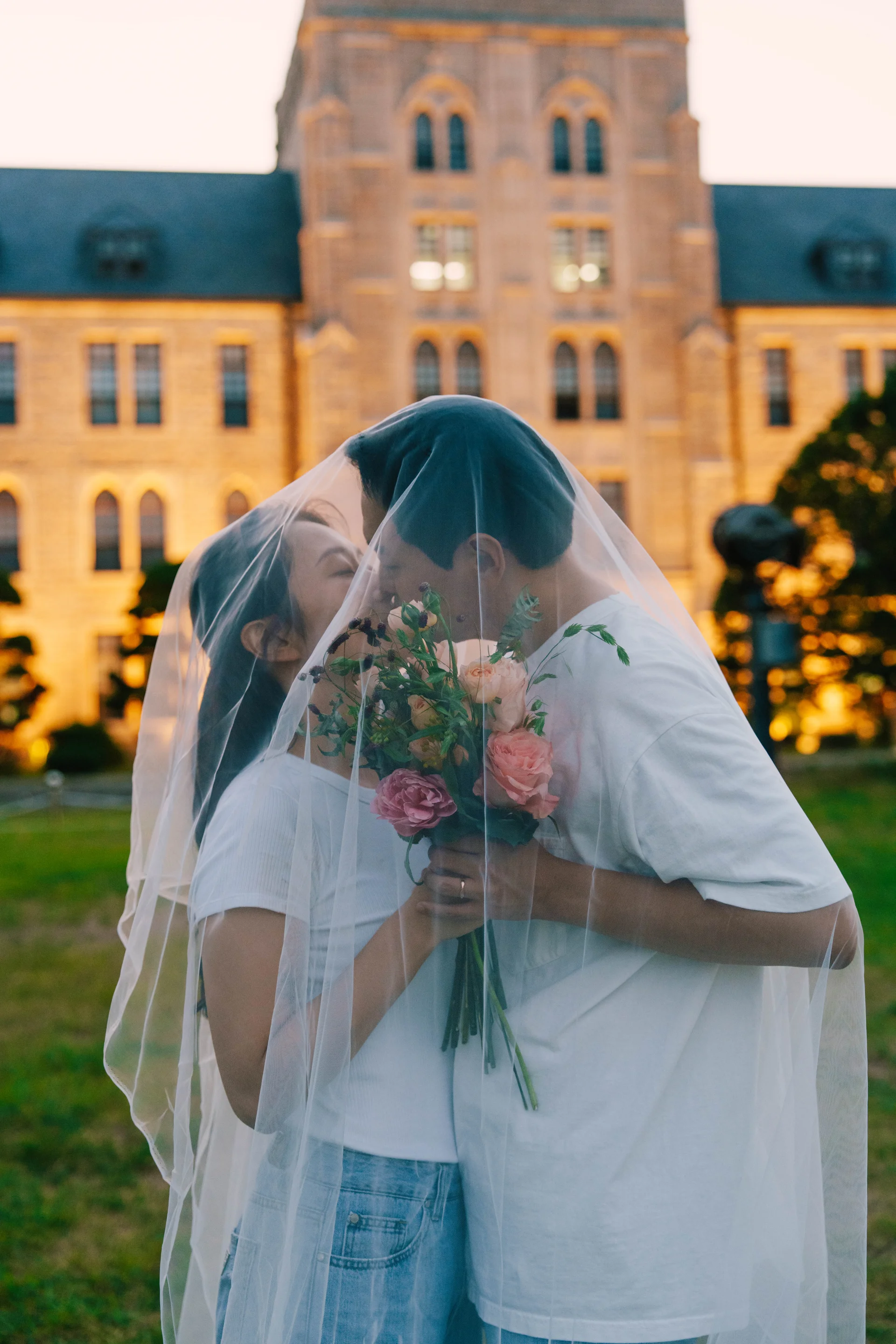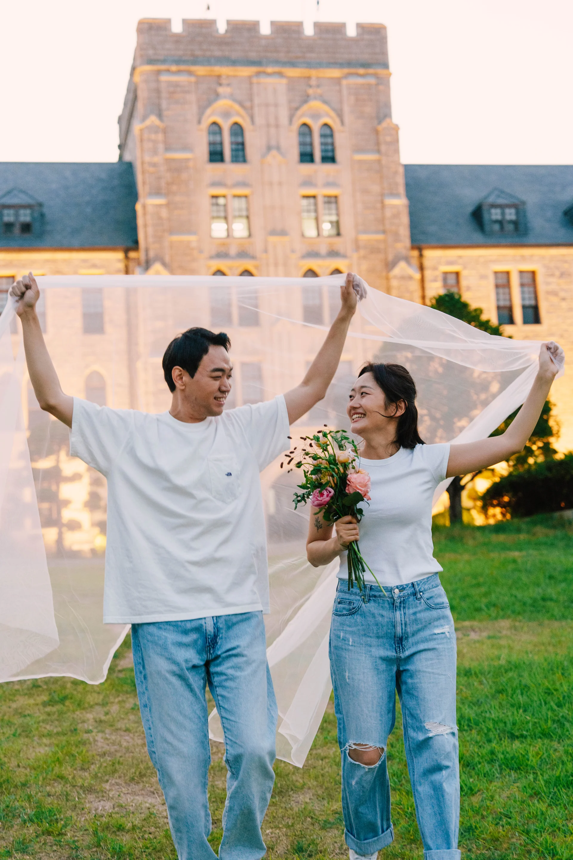 고려대학교 캠퍼스는 고딕 양식의 건물과 모던한 공간이 조화되어 다양한 분위기의 캠퍼스 웨딩스냅을 연출할 수 있습니다.