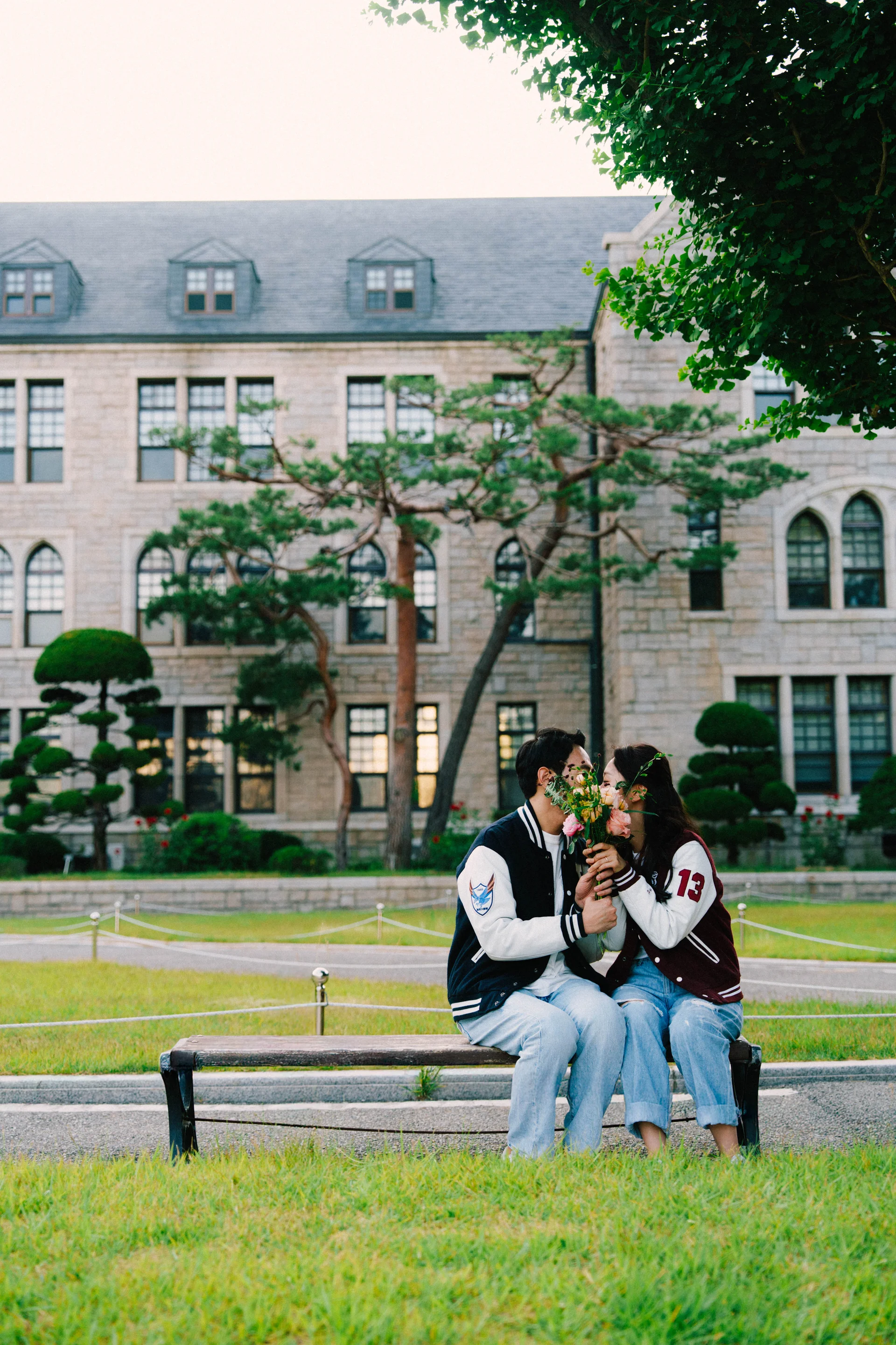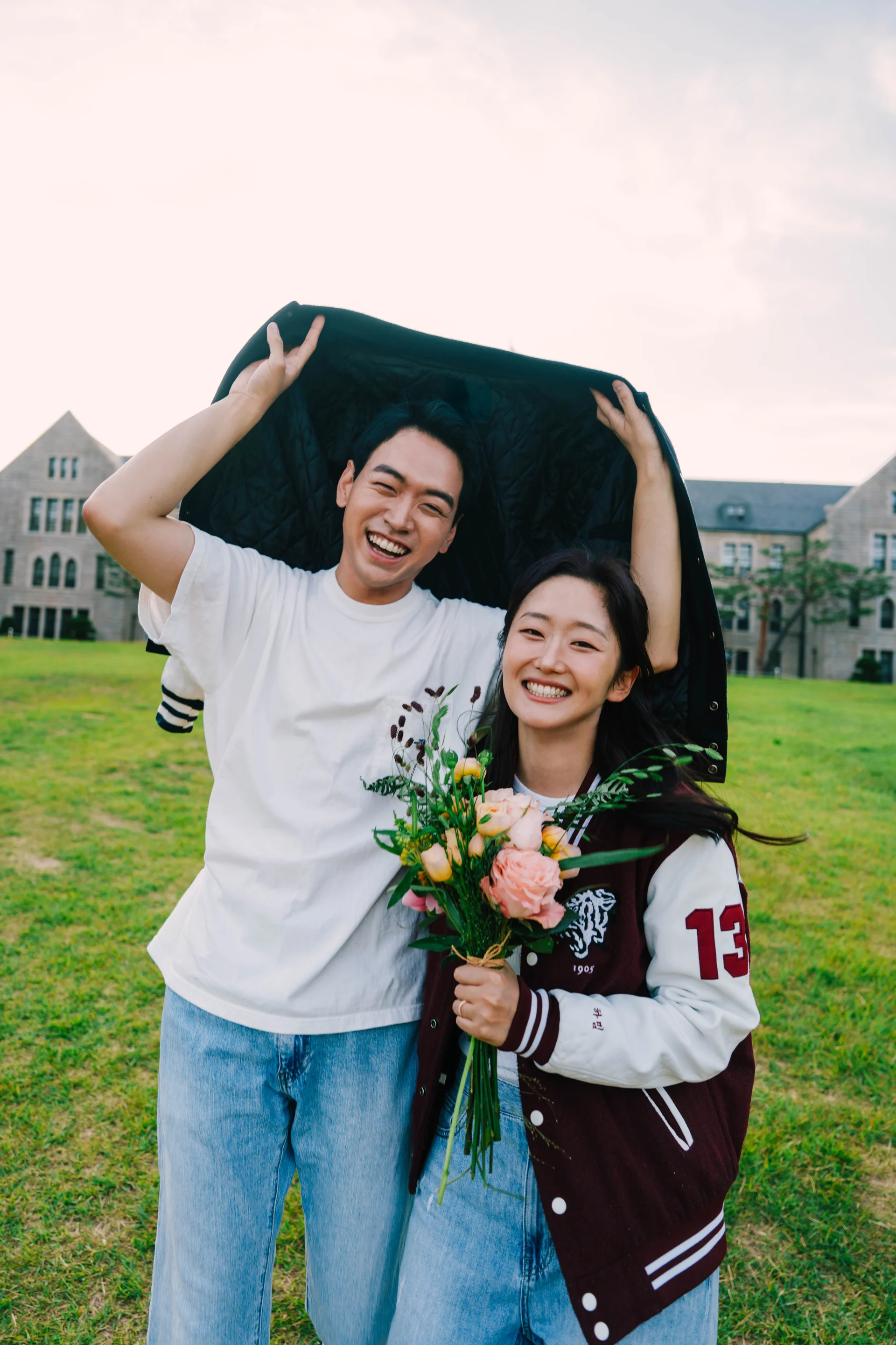 이번 촬영의 주인공은 각자의 학교 로고가 새겨진 과잠을 입고 촬영을 진행한 커플이었습니다. 두 사람이 함께한 시간과 수많은 추억이 담긴 과잠을 웨딩 사진으로 기록하는 것은 무해한스냅이 가장 중요하게 생각하는 '감정 중심' 촬영의 핵심이었습니다.