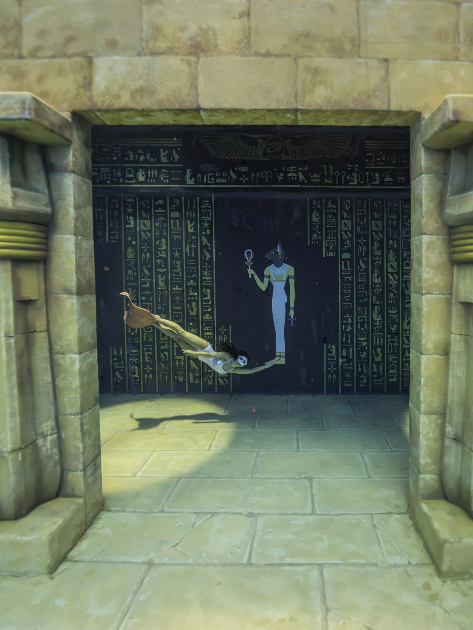 완벽한 인프라: 정교한 조명 시스템이 갖춰져 있어 물속에서도 맑고 선명한 인물 표현이 가능합니다. 벽면과 바닥의 독특한 그래픽은 사진에 유니크한 미장센을 더해줍니다.