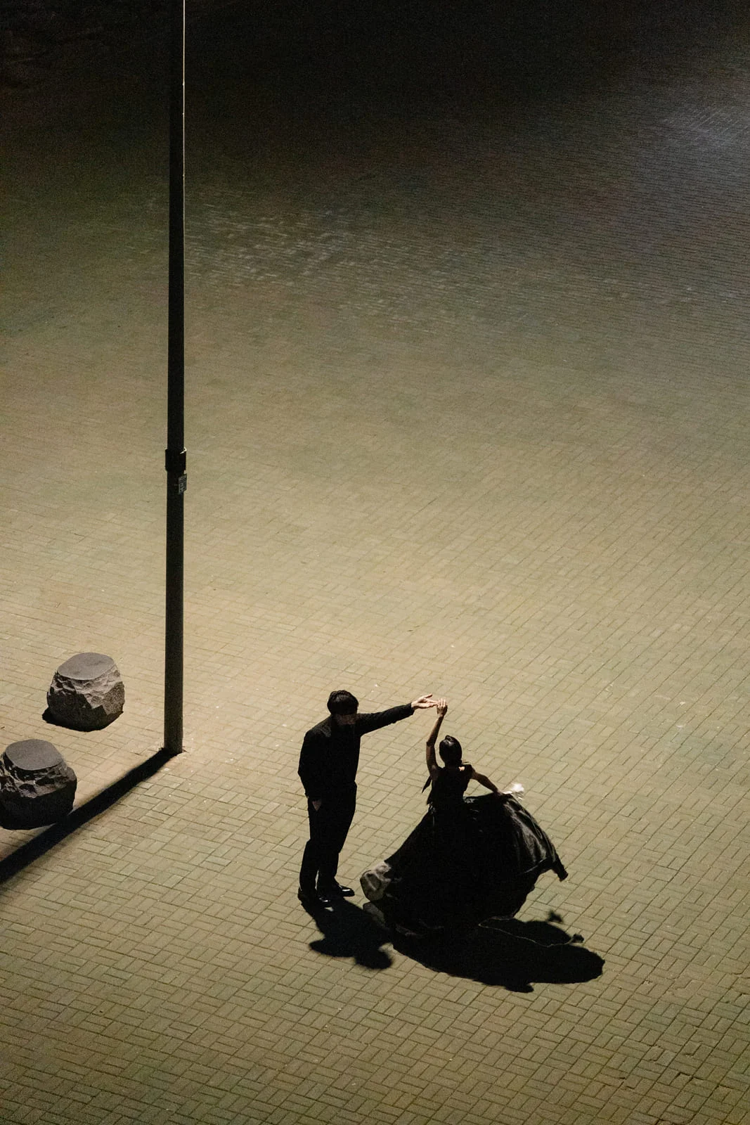 시크한 블랙 무드: 야경 촬영은 조명의 대비가 강합니다. 블랙 드레스와 블랙 수트는 화려한 도심 배경 속에서 인물의 선을 가장 또렷하고 세련되게 잡아주는 ‘치트키’입니다.