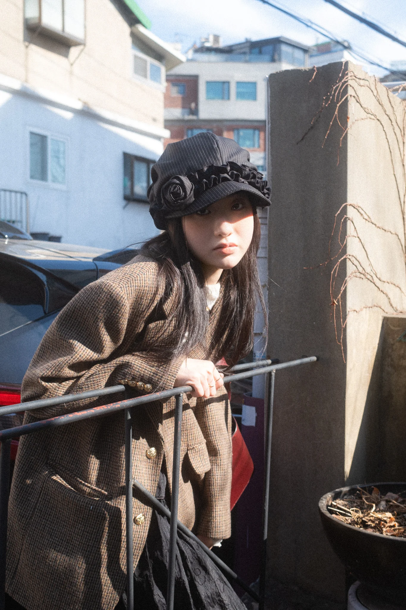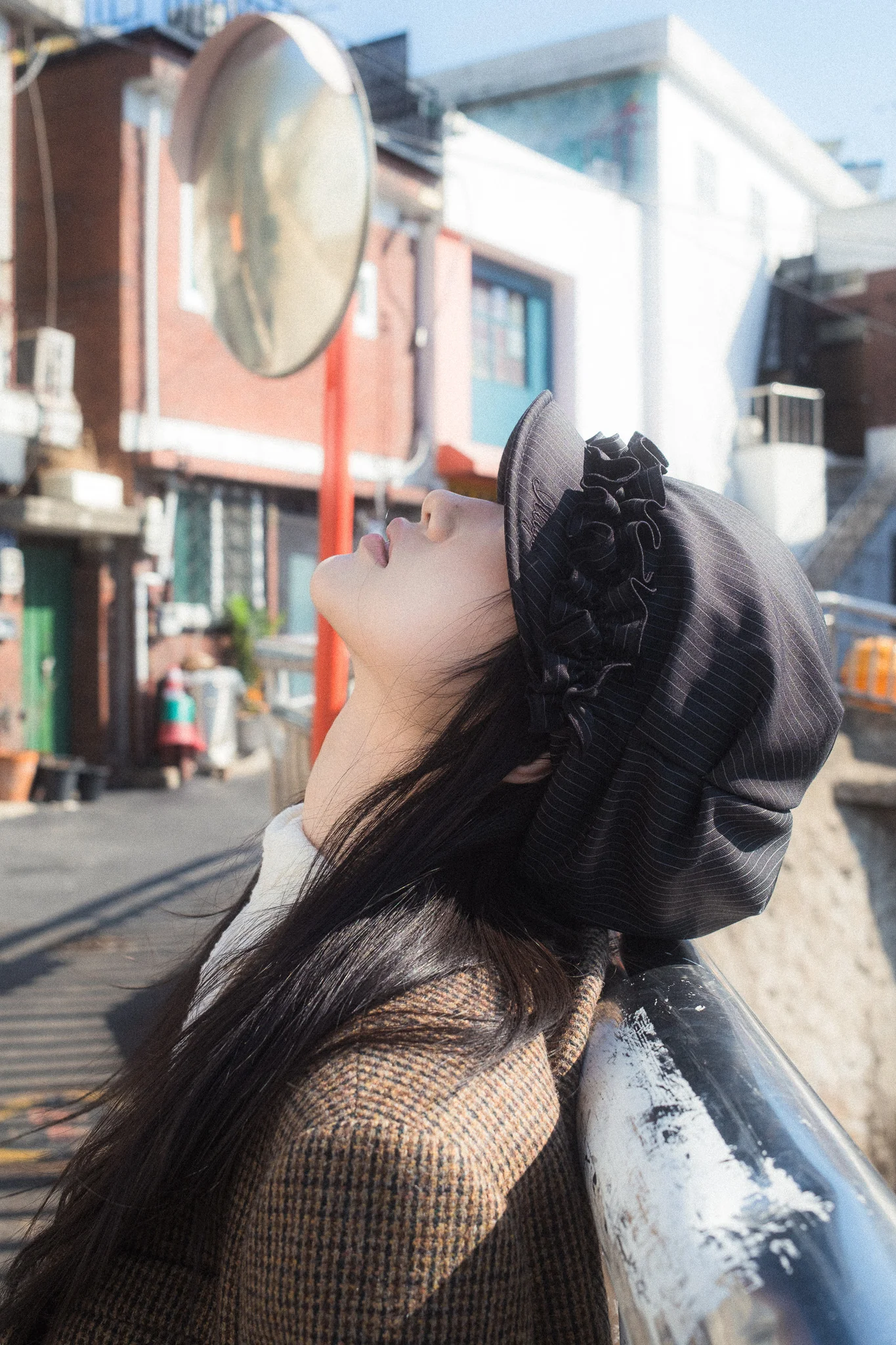 이번 촬영은 전체적으로 부드럽고 따뜻한 톤을 지향했습니다. 햇살이 좋은 날의 이화벽화마을은 빛이 골목 사이사이로 산란되며 몽환적인 분위기를 자아내죠. 나라코드는 이 빛의 흐름을 따라가며 몽글몽글한 느낌을 극대화하여, 인물이 배경 속에 부드럽게 녹아드는 시네마틱 연출을 시도했습니다.