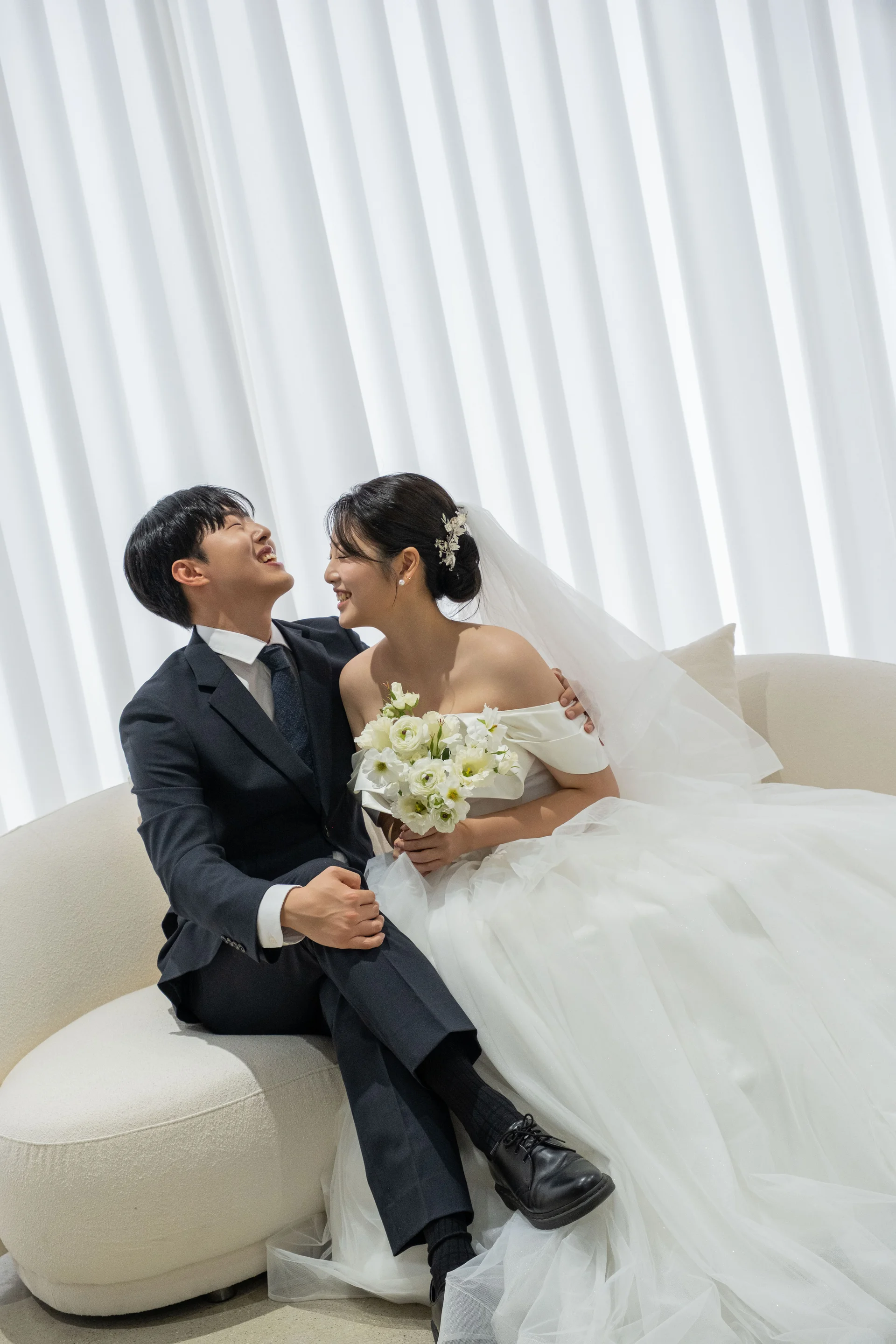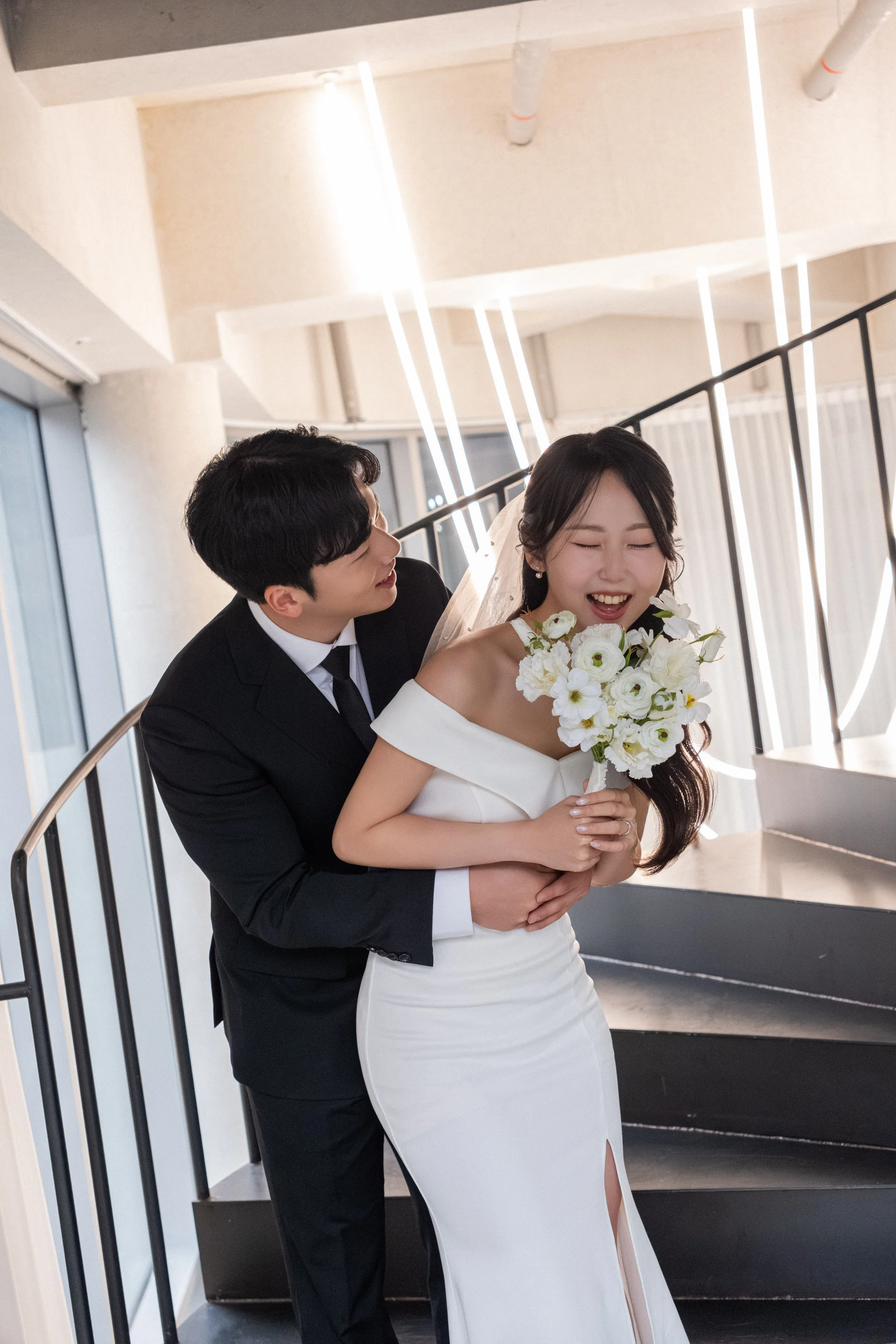 이곳은 각 층마다 다른 분위기를 가지고 있습니다. 곡선이 돋보이는 계단부터 햇살이 쏟아지는 통창 공간까지, 소유필름은 두 분의 움직임이 멈추지 않도록 유연한 동선을 설계했습니다. 이러한 입체적인 공간 활용은 한 번의 촬영으로도 여러 스튜디오에서 찍은 듯한 풍성한 앨범 구성을 가능하게 합니다.