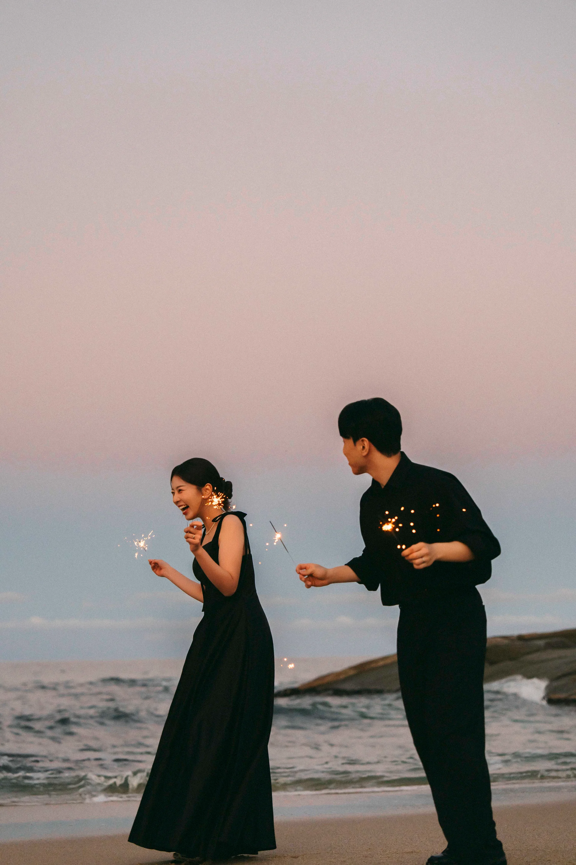 어두운 시간대나 해질녘, 스파클라는 빛을 직접 만들어내어 로맨틱한 분위기를 완성합니다. 강렬한 빛을 내는 분수 폭죽은 흑백 사진에서도 압도적인 화려함을 선사하죠. 후안스냅은 이러한 특수 효과 소품을 사용할 때, 연기가 적은 제품을 선별하여 인물의 실루엣이 묻히지 않도록 전략적으로 촬영합니다.
