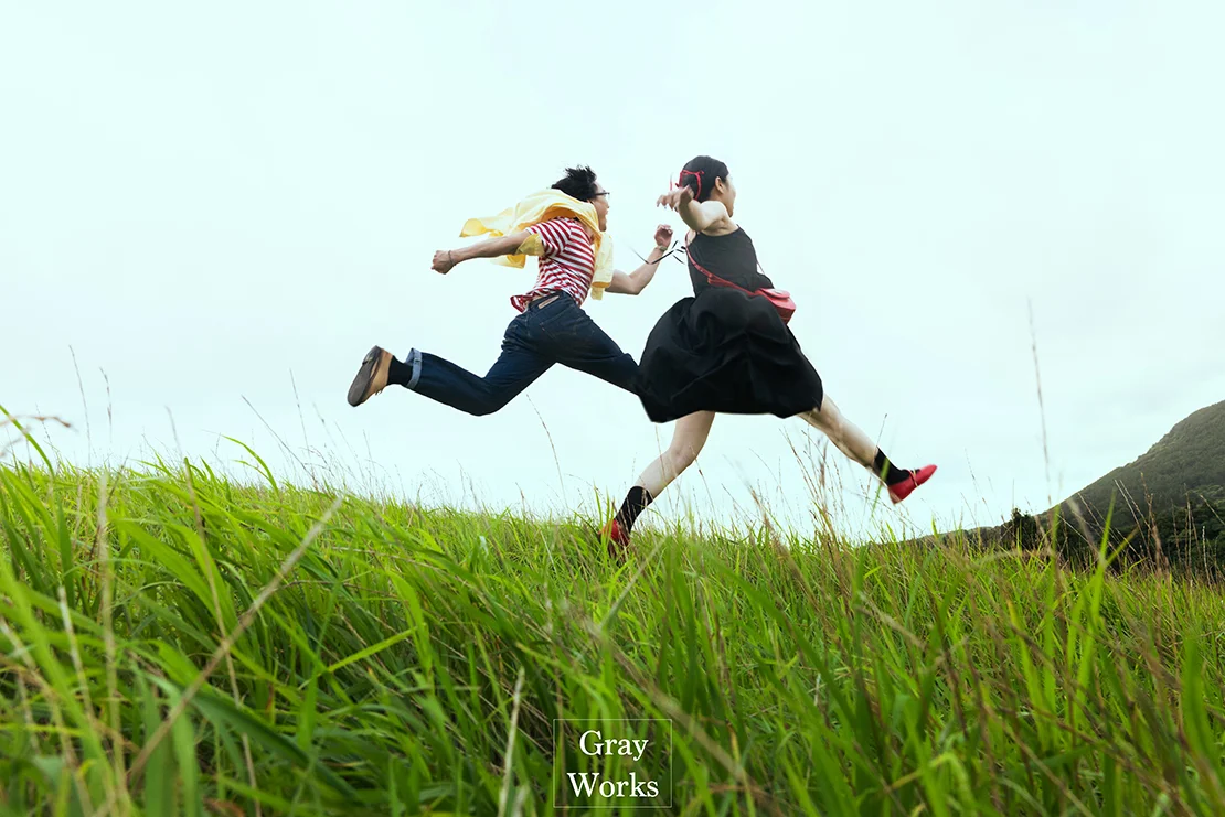 바람이 없는 날에도 셔츠가 흩날리는 듯한 연출을 통해 사진에 속도감과 공기감을 더했습니다. 정적인 웨딩 사진의 틀을 깨고 한 편의 영화 클립 같은 생생함을 프레임에 담아내는 것, 이것이 그레이웍스가 추구하는 컨셉 웨딩의 정수입니다.