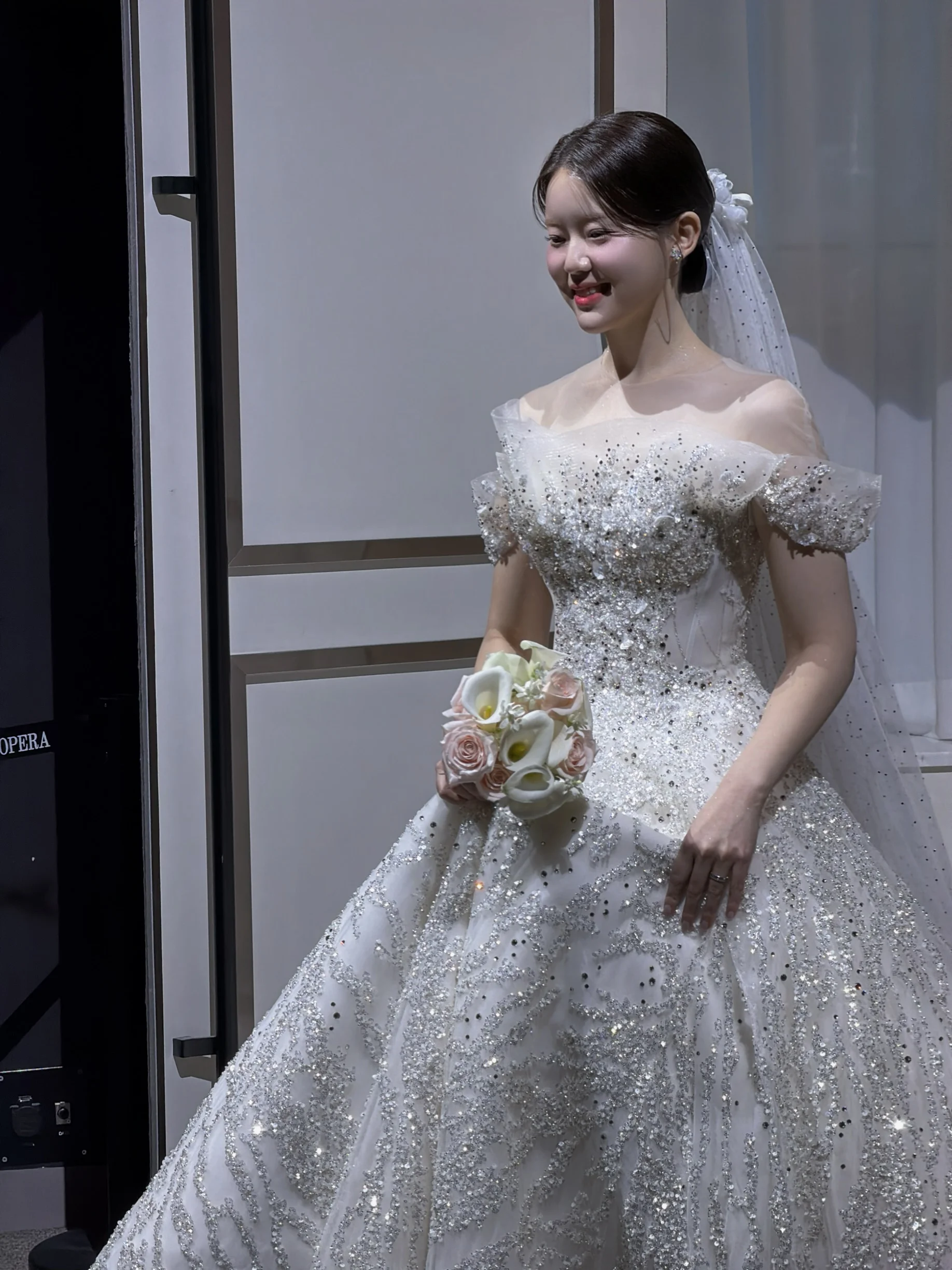어두운 배경에서는 화려한 비즈 장식이 핀 조명을 받아 별처럼 빛나는 효과를 줍니다. 메이크업 역시 조명에 색조가 묻히지 않도록 이목구비를 또렷하게 살리는 스타일을 추천드립니다. 스냅이노이언의 렌즈는 그 반짝임과 깊이 있는 눈빛을 가장 생생하게 기록해 드릴 것입니다.