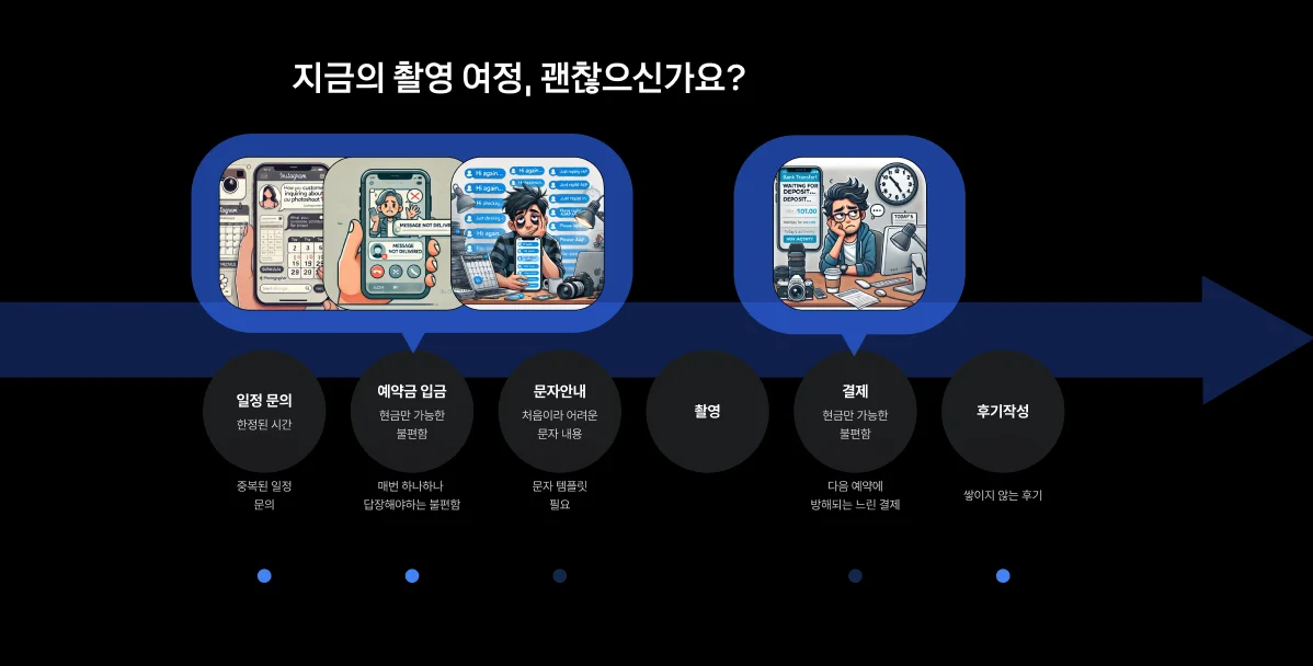 견적서 작성, 고객 응대, 촬영 일정 관리 등 반복적인 작업들을 자동화하여, 작가님들이 사진에 집중할 수 있도록 합니다.