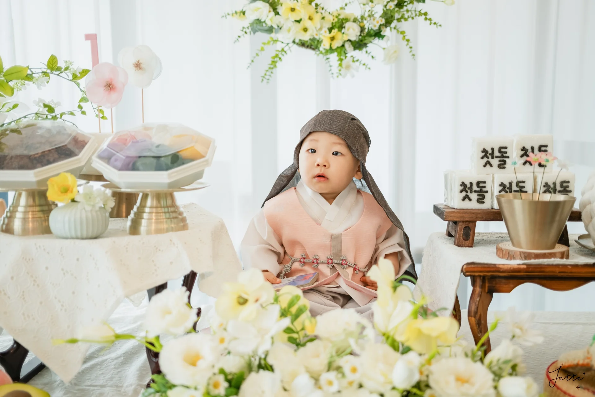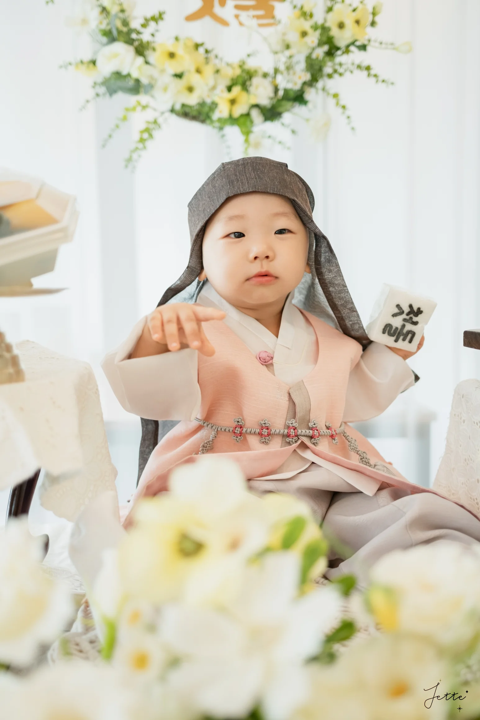 한복 선택: 한복 돌스냅의 경우, 돌상 분위기에 맞춰 원색 계열이나 전통 패턴도 잘 어울리며, 파스텔톤도 인기가 높습니다.