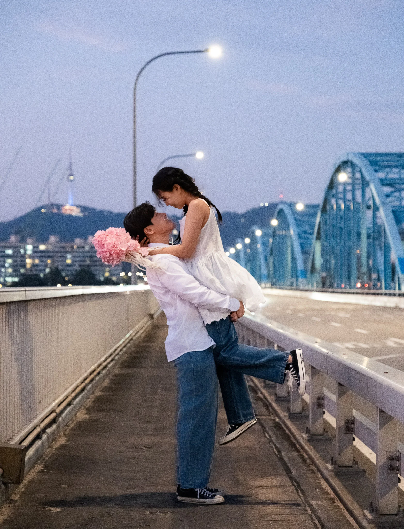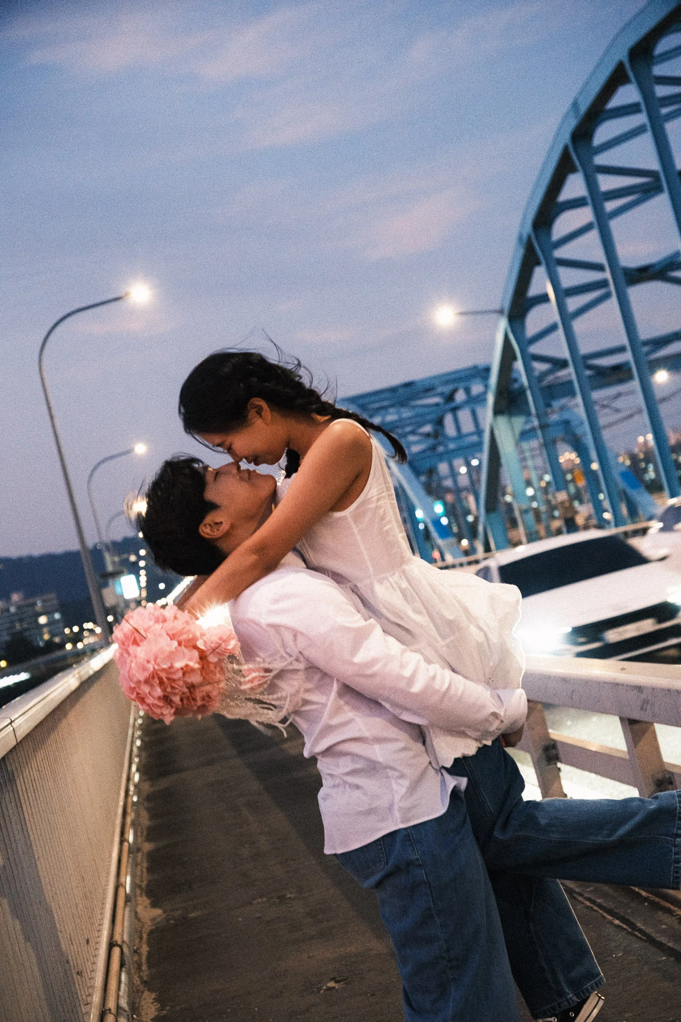 스튜디오 촬영 후에는 서울 동작대교로 이동해 야외 웨딩스냅을 진행했습니다.