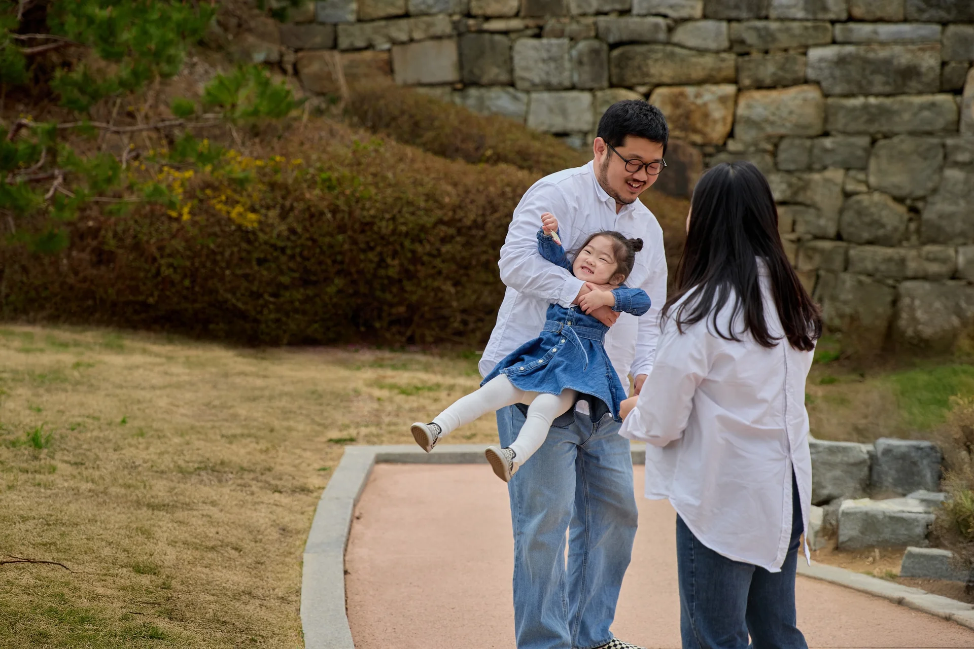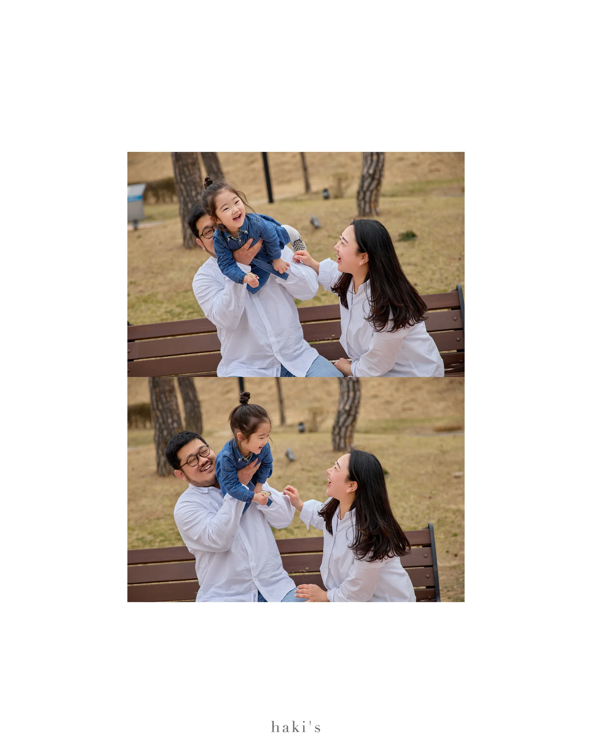 아빠의 에너지: 아이를 들고, 안고, 업어주는 역동적인 컷이 많기 때문에 아빠의 든든한 체력은 사진의 퀄리티를 높이는 숨은 비결입니다.
