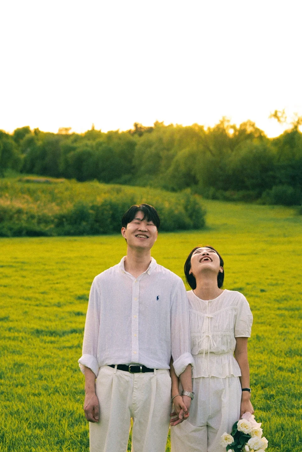 노을공원의 분위기에는 무거운 드레스보다 가벼운 세미 웨딩룩이 훨씬 세련되게 담깁니다.